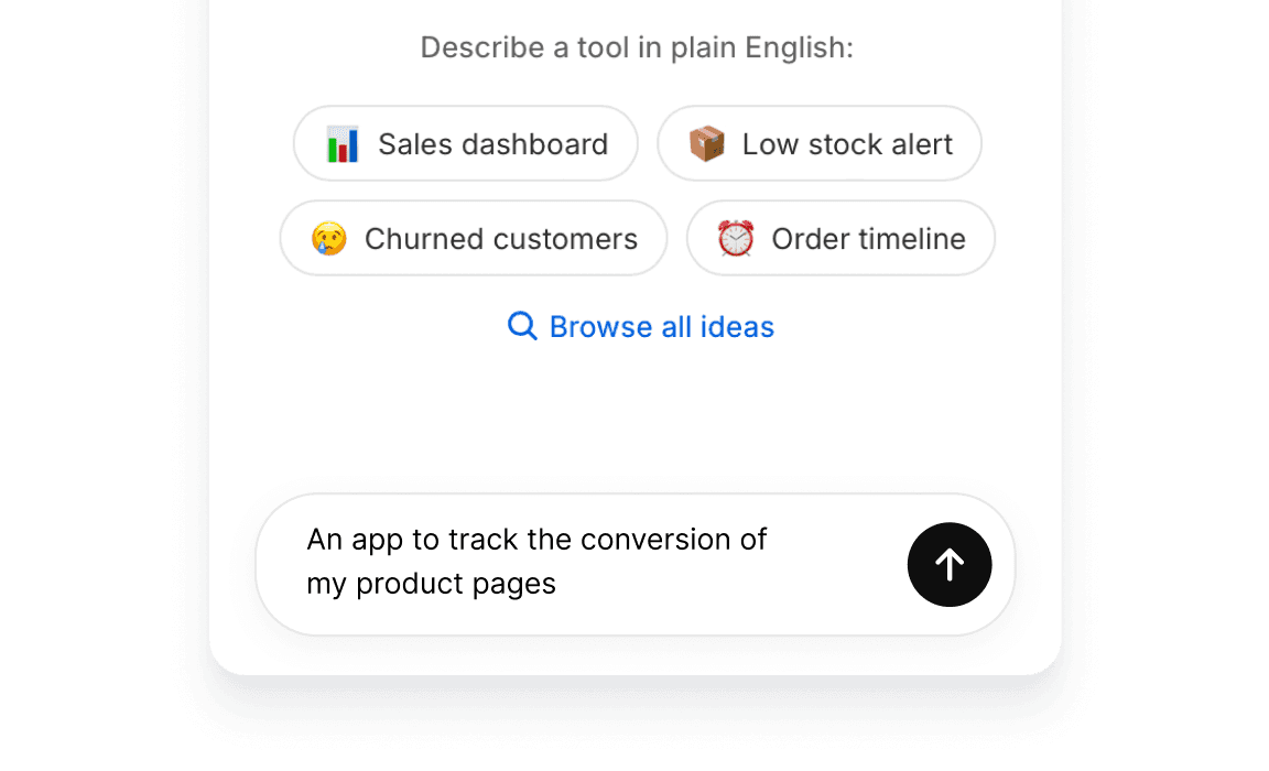 Turn plain language into a working app in seconds. No setup. No templates. No code.